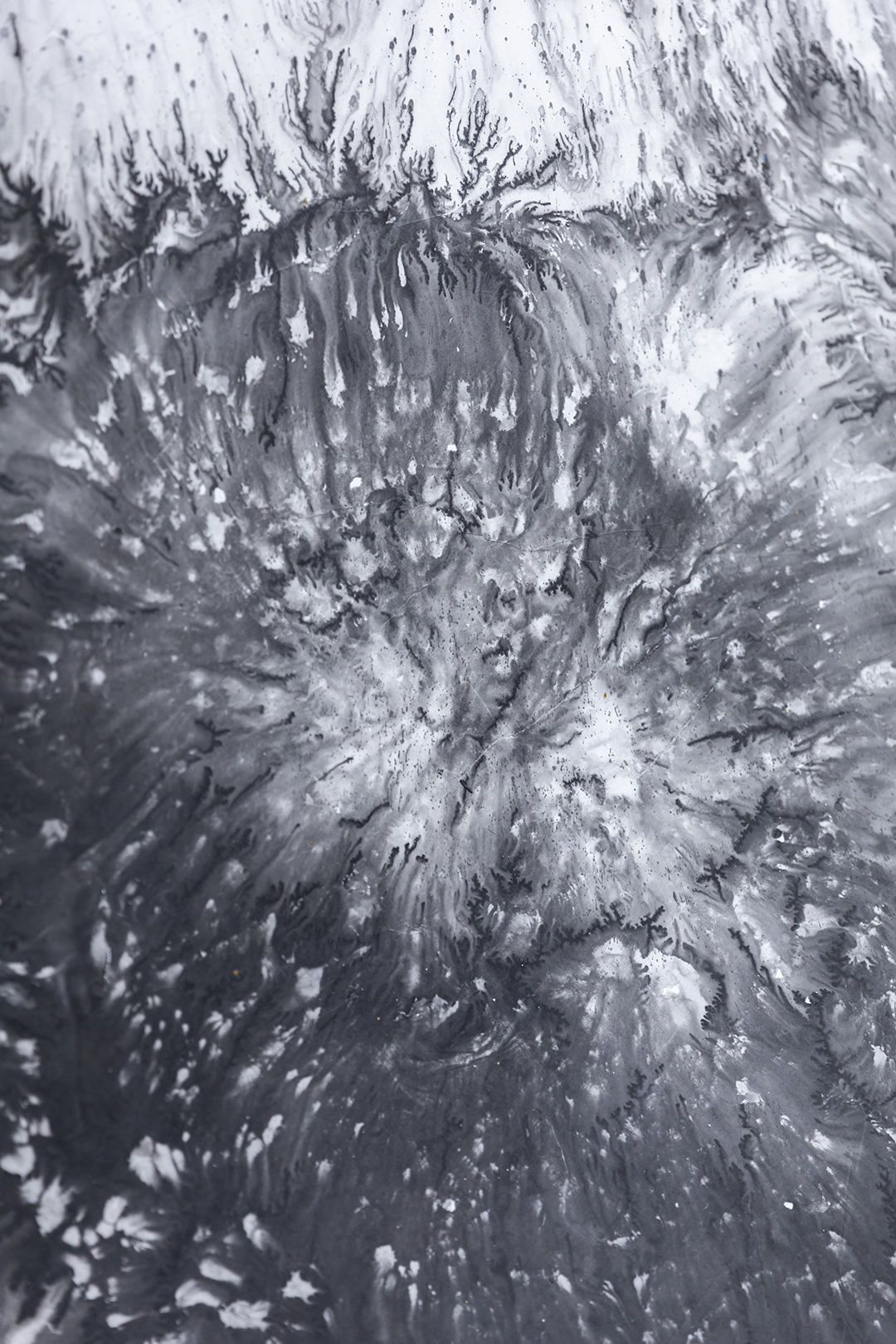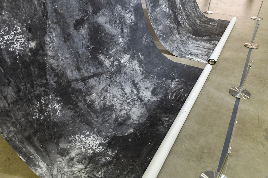 In the summer of 2013, Bingyi went to the Longhu Mountains to paint Wanwu-the metamorphosis of all beings-the first in a series of reality-scaled land-and-weather-artworks created at sacred mountain sites across China. That year she loaded a truck loaded with massive sheets of bespoke xuan paper and her painting materials and drove from mountain to mountain looking to capture the essence of history and nature in a single site. She finally arrived in the Longhu Mountains where Chen Rong (1200-1266) the Southern Song master supposedly practiced Daoism and painted dragons. It was in the Longhu Mountains that Bingyi found her ideal site for painting Wanwu. Absolutely monumental in scale-coming to over 24 by 18 meters in area-the gigantic, dancing, flying shanshui paintings embodied the potent admixture of richly-layered historic memory with boundless natural power.