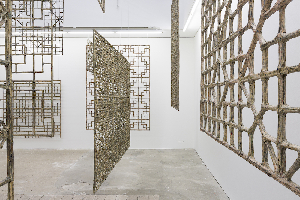Gordon Cheung’s mesmerizing work Home recreates traditional Chinese windows from financial newspapers and bamboo, symbolising homes lost to China’s rapid urbanization. Hovering between states of ‘being,’ these ghostly structures bridge the traditional and modern, gazing from the past through a financial frame into the future.